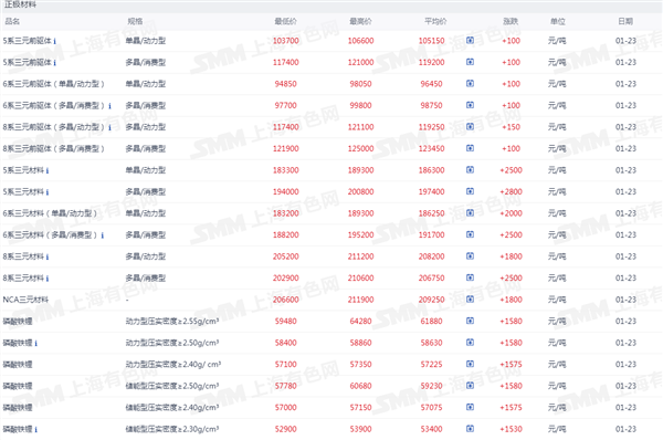 正极材料价格