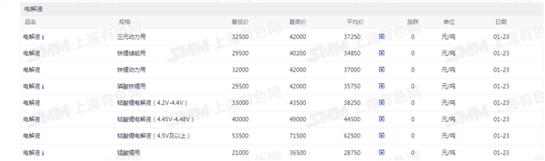 电解液价格