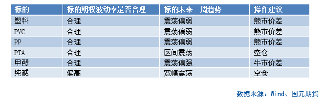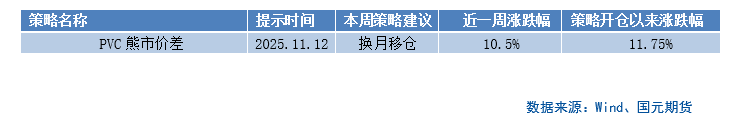 本周化工板块整体震荡行情为主,PTA较为强势。PVC方面,当前基本面仍承压;检修陆续结束,产量将有所上升,下游开工季节性减弱+成本小幅上移,行情大概率围绕成本线震荡偏弱。投资者可考虑继续持有PVC认购熊市价差组合,但需换至2月合约。