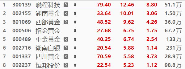 贵金属板块出现分歧 湖南黄金4连板成“独苗”