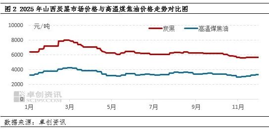 总体来看,以山西地区为例,截至11月30日,11月炭黑市场价格月均价下跌4.69%,而成本较上月下滑2.57%,行业亏损幅度进一步扩大。