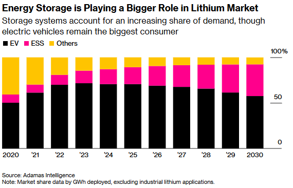 锂市多头正在押注,能源存储系统将成为下一个重要的电池金属需求支柱,推动全球市场在多年的供应过剩后重新趋向平衡。