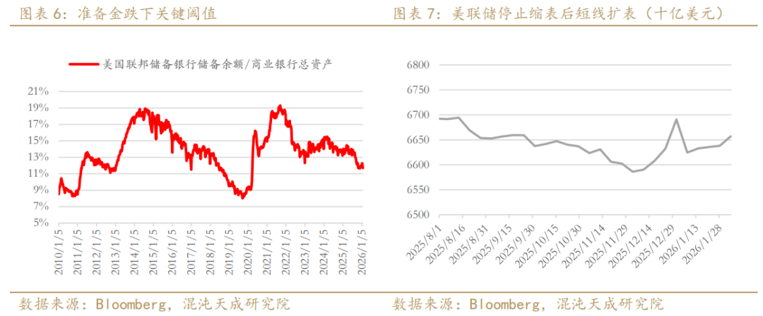3)宏观推演: 凯文·沃什虽然主张缩表,但在储备金触及11%红线的情况下,一旦跌破此阀值,将可能爆发流动性风险。随后通过官员表态和市场实时变动观测是否触及政策底,倒逼美联储无法开启QT,且重启QE或短期流动性工具来注入流动性,这构成了贵金属的 “流动性底部”。