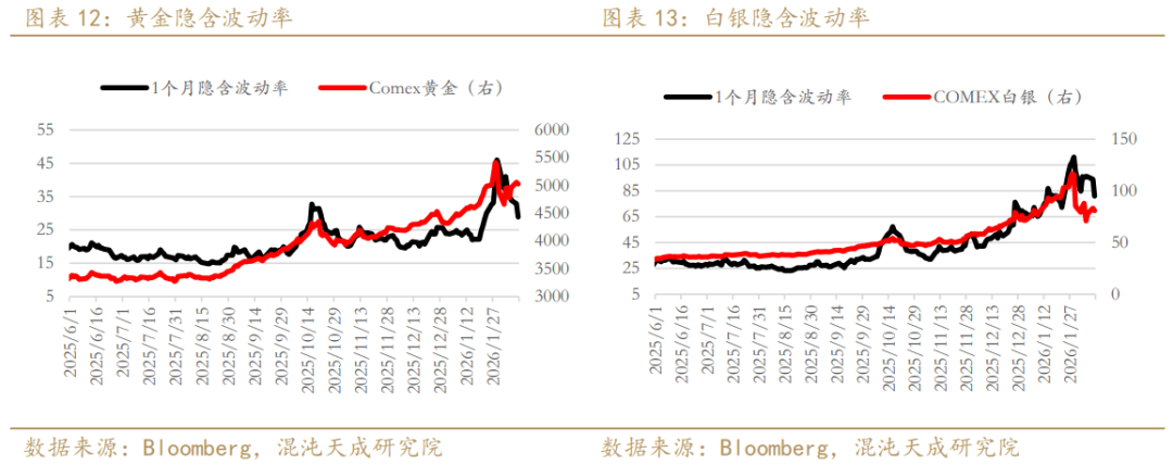 2.1 波动率回归: 恐慌指数以及贵金属ETF的隐含波动率已从1月底的历史高位显著回落。期权市场的Skew也从极端的看涨偏离回归中性,表明最恐慌的逼空和随后的多杀多行情已经结束。