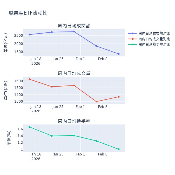 流动性方面,节前一周股票型ETF市场日均成交额减少26.2%,日均成交量增加5.4%,换手率减少0.25%。