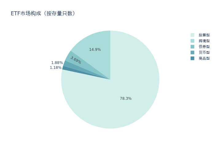 节前一周市场上存量ETF共计1435只,其中股票型ETF1124只,债券型ETF53只,货币型ETF27只,商品型ETF17只,跨境型ETF214只。