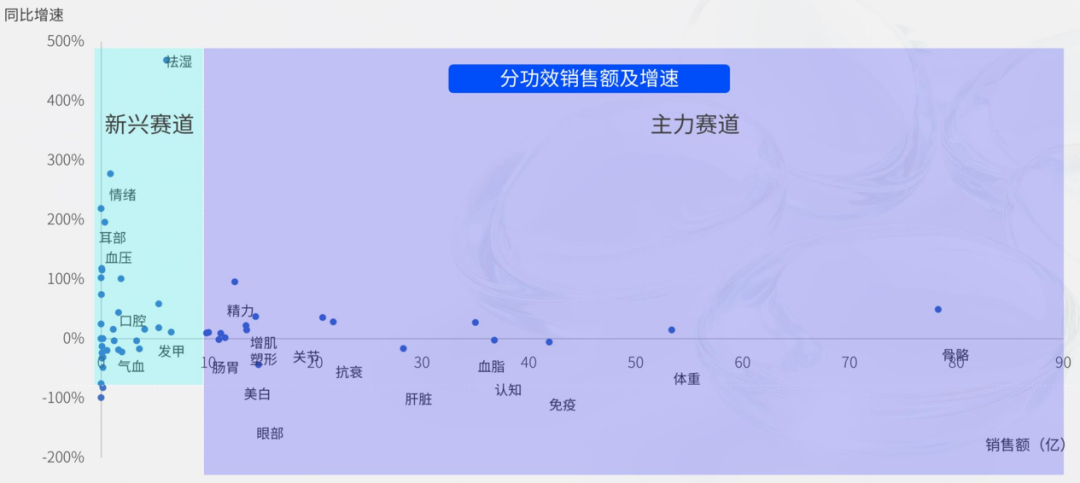 新功能方面,抗衰、助眠、情绪管理、肝脏养护、肠道健康等细分功能赛道将持续爆发,同时与健康管理结合的场景化功能产品,比如减重辅助营养、职场抗疲劳、术后康复营养)将快速崛起。