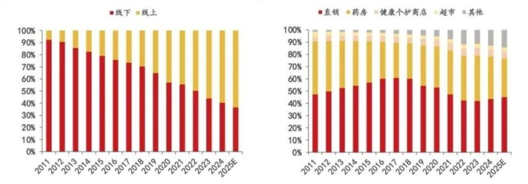 2011-2025E膳食营养补充剂下游渠道类型(左)