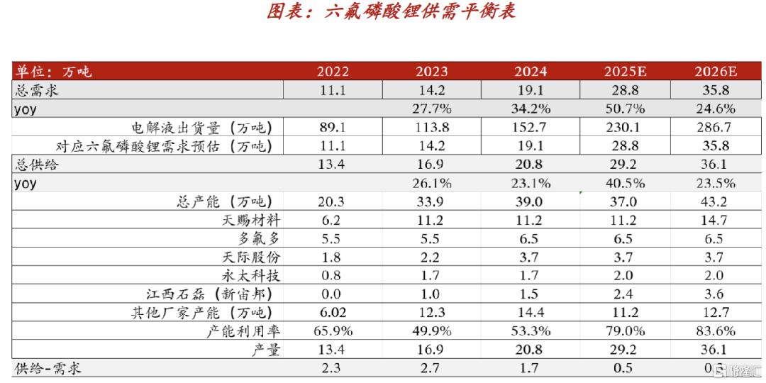 六氟磷酸锂受储能需求激增、供给优化、成本上升等因素推动,价格快速上涨,2026年行业有效供给36.1万吨,市场延续紧平衡,支撑价格高位维持,锂电隔膜经历深度价格战后,行业扩产趋于谨慎,2026年需求增速29%远超供给增速16%,价格触底回升,头部厂商订单饱满,若价格提涨20%-30%,行业盈利将大幅修复。
