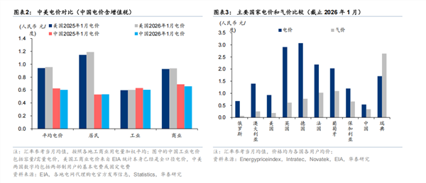 首先看成本。AI的比拼,尤其是大模型的训练和推理,本质上是算力时长的比拼,而算力消耗的终点就是电力。中国的电价在主要经济体中具备显著竞争力,这得益于我国庞大且高效的电网基础,以及全球领先的风光水电装机量。