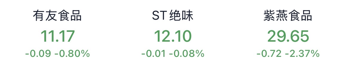 现代快报记者注意到,肉禽养殖与加工环节未受直接波及,圣农发展(002299)、温氏股份(300498)、益客食品(301116)等企业股价逆势收涨;良品铺子(603719)、三只松鼠(300783)、来伊份(603777)等休闲零食渠道股表现稳健。