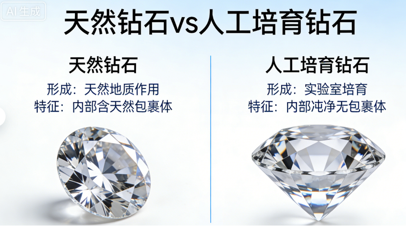 天然钻石与人工培育钻石对比图 图源:AI制作