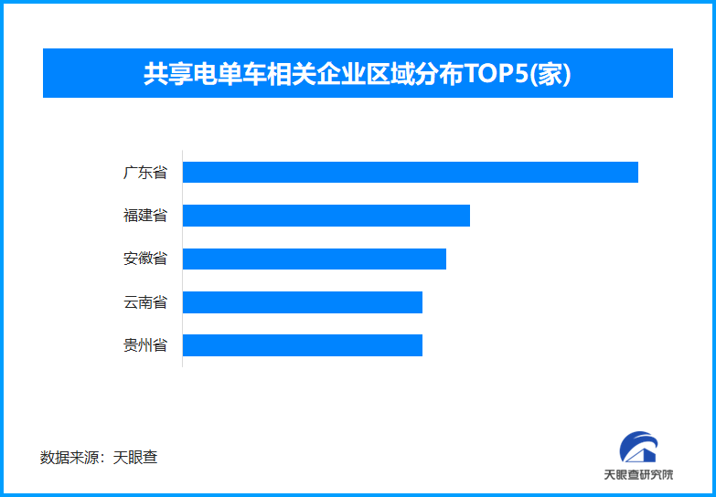 天眼查专业版数据显示,截至目前,我国拥有超120家共享电单车相关企业。从地域分布上看,广东、福建以及安徽三地,共享电单车相关企业数量位居前列,分别拥有19家,12家以及11家。