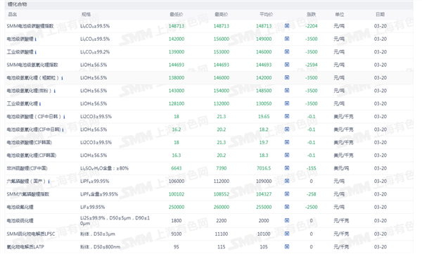 锂化合物现货价格