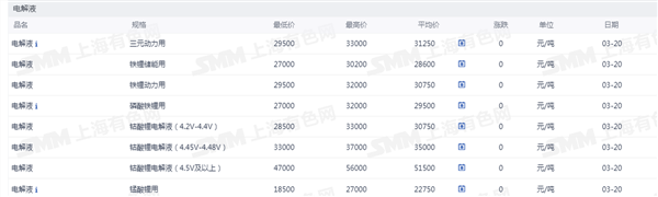 电解液价格