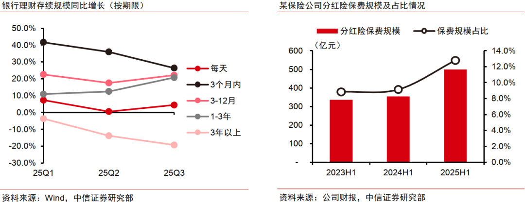 2)金融产品看,分红险与现金管理产品有望受益。结合比价因素和渠道因素,现金管理产品和分红险产品或成为“定存搬家”的直接受益方,2025年下半年已有显著体现。