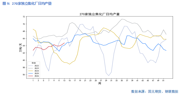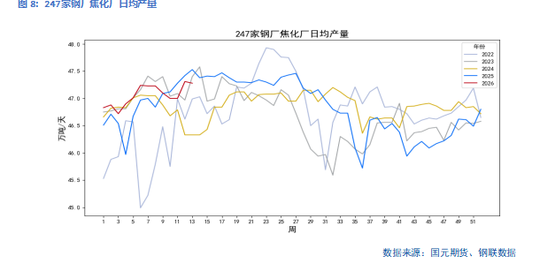 上周,230家样本独立焦化厂焦炭日均产量为51.41万吨/天,周环比增加1.28%;270家样本独立焦化厂焦炭日均产量为64.76万吨/天,周环比增加0.81%;247家钢厂焦化厂日均产量47.28万吨/天,周环比下降0.06%。上周,独立焦化厂吨焦利润为21.0元/吨,周环比下降17.0元/吨。
