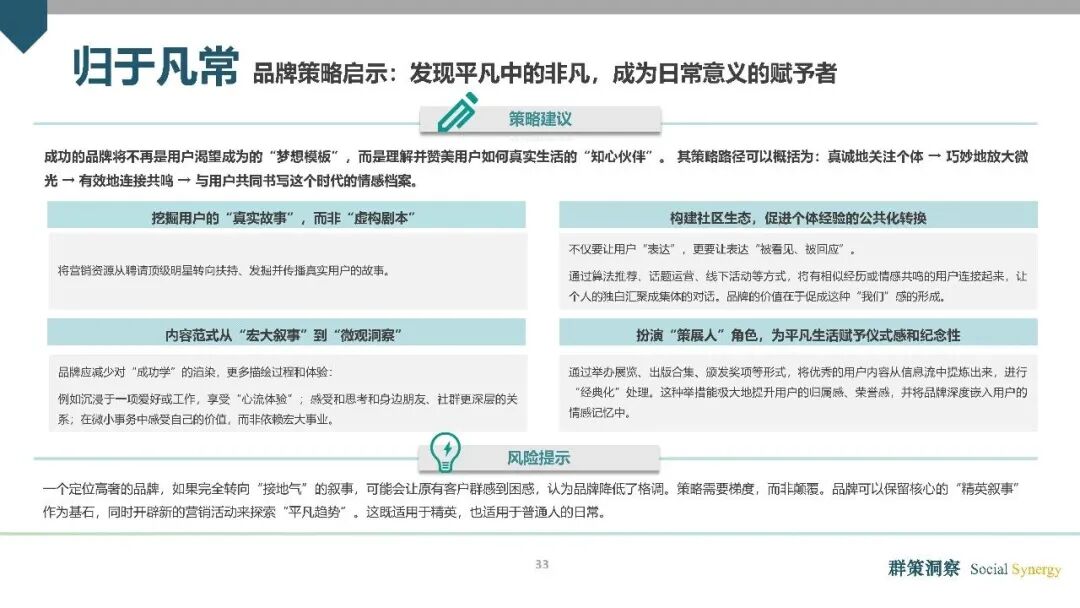 归于凡常:立足当下,在平凡中挖掘生活意义。在增长红利减退的现实背景下,更多消费者从“延迟满足”转向“重视当下体验”,归于凡常成为消费的核心转向。正如《报告》所强调,品牌无需再为消费者打造遥不可及的梦想,而是要看见并尊重普通人的真实生活,通过产品与服务,帮助用户在日常中发现微小的美好与非凡的意义。拒绝过度消费,重视当下感受,成为当代消费者的核心共识。