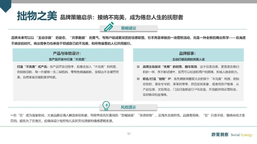 拙物之爱:接纳不完美,实现自我和解。在“全人消费”视角下,消费不再是“追求完美”的工具,而是“允许不完美”的载体——消费者通过购买“不完美”的产品,接纳自己的疲惫、笨拙与偶尔的失败,悦纳真实的、有缺点的自我。这种消费的核心并非猎奇,而是情绪的抚慰与自我的和解。它让消费从“向外展示”回归“向内审视”,成为个体实现自我接纳的重要途径。