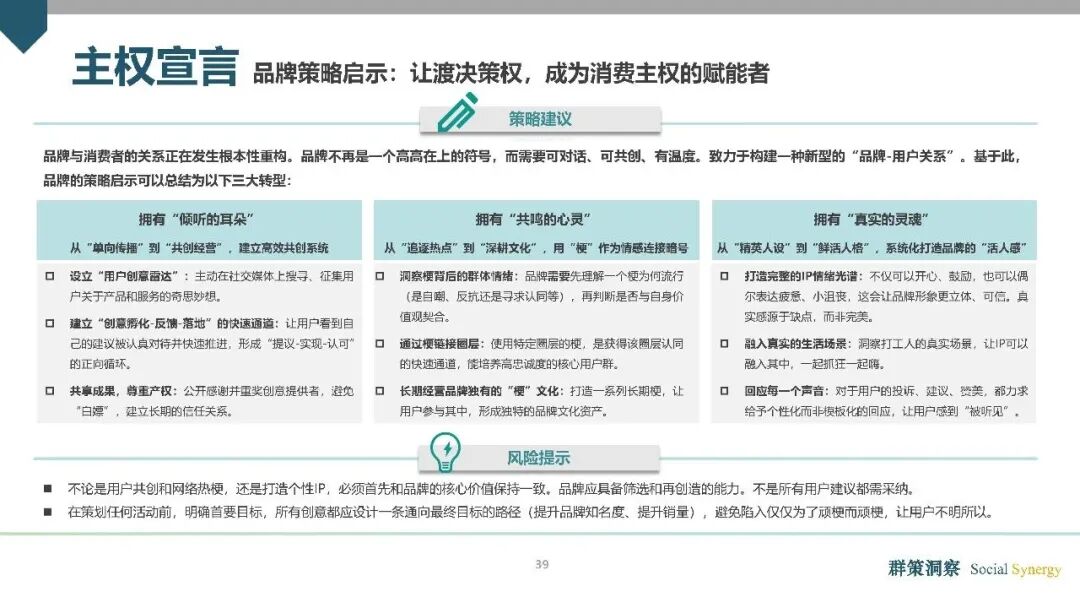 主权宣言:主动参与,掌握消费主导权。“全人消费”时代的核心特征之一,是消费者消费主权的全面觉醒,“主权宣誓”成为消费市场的重要趋势。消费者希望在与品牌的互动中,拥有更多的声量与权力,并且最终在消费行为中实现自身价值感的印证。《报告》指出,品牌必须真正让渡决策权,建立从用户创意征集到落地反馈的完整通道,用实际行动回应用户诉求,从“符号制造者”转变为“可对话、可共创的用户伙伴”。
