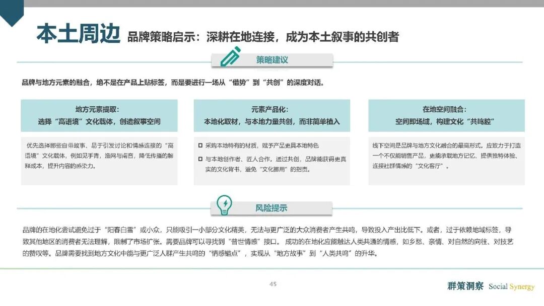本土周边:回归附近,挖掘本土消费价值。在消费理性化的浪潮下,消费者对“远方生活”逐渐祛魅,“本土周边”成为消费市场的新热点。这种转向的背后,是消费者对“真实、可触摸的消费体验”的强烈渴望。数据显示,2025年暑期,日照、秦皇岛、延边朝鲜族自治州等小城的酒旅订单环比涨幅均超过1倍;村超的出圈带动地方赛事经济推广,不仅带火了地方景区与特色美食,更让本土文化获得全国曝光;城市集市、citywalk持续火爆。消费在这里,不再是对远方生活的模仿,而是重新认识家乡、连接本土、发现附近美好的方式。