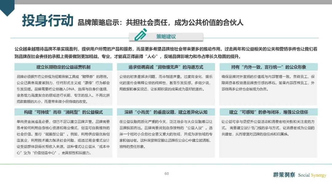 投身行动:追求共益,践行商业公共价值。契约重塑的最高层面,是消费者对商业公共价值的共同追求,“投身行动”成为“全人消费”时代的高阶趋势。消费者的消费行为,逐渐成为践行公共价值的重要方式——他们更愿意选择环保、低碳、公益的品牌与产品,愿意为品牌的社会责任买单。《报告》指出,“全人消费”时代,消费者不再只关注产品本身,更关注品牌的价值观与社会贡献,品牌只有将商业价值与公共价值结合,才能真正赢得消费者的长期信任与选择,实现可持续发展。