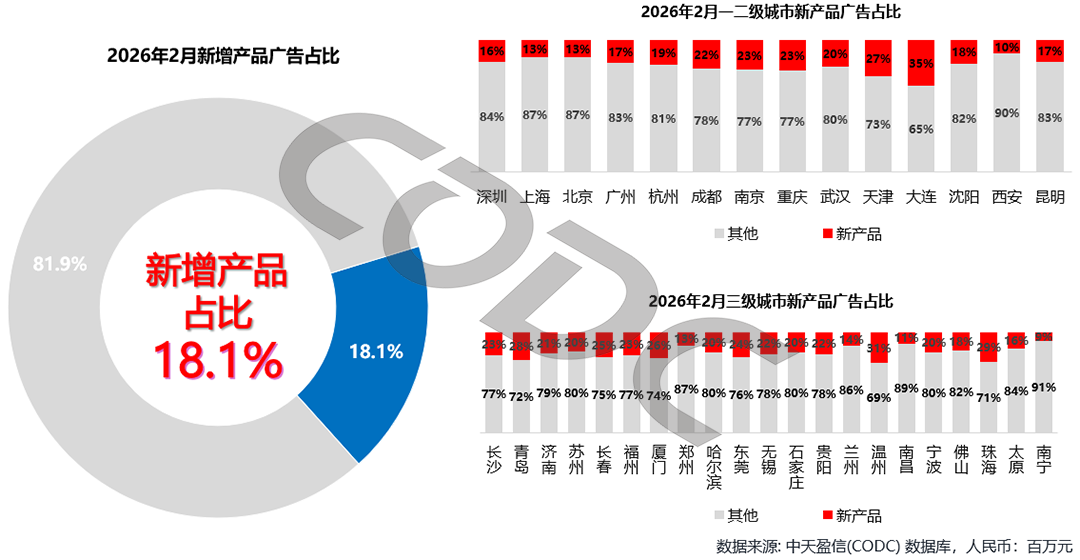 2026年2月,户外广告市场新增品牌投放活力凸显,当月新增品牌广告投放额达36.25亿元,占户外广告总容量的18.1%,显示出品牌方对户外媒体价值的高度认可,也为市场增长注入新动能。