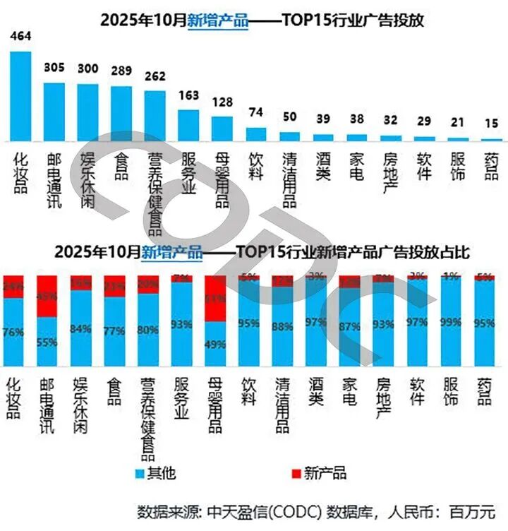 从投放行业看,TOP15行业中多数广告花费同比高于上年同期。营养保健食品、个人用品和邮电通讯行业尤为亮眼,不仅同比大幅增长,环比也实现显著提升。
