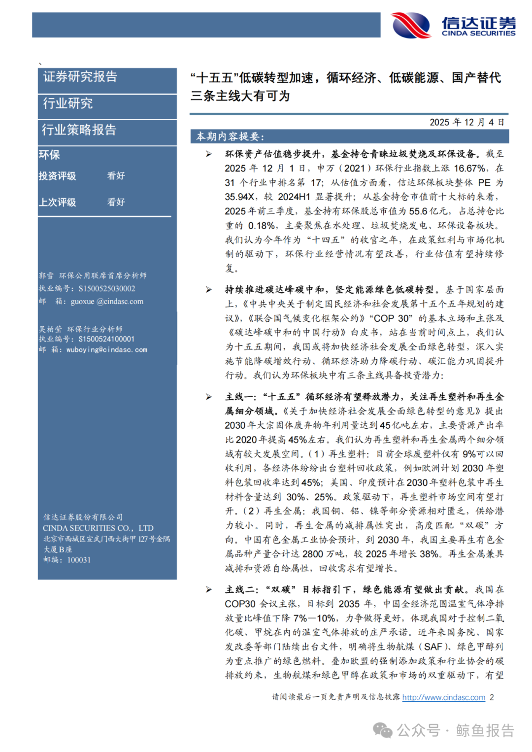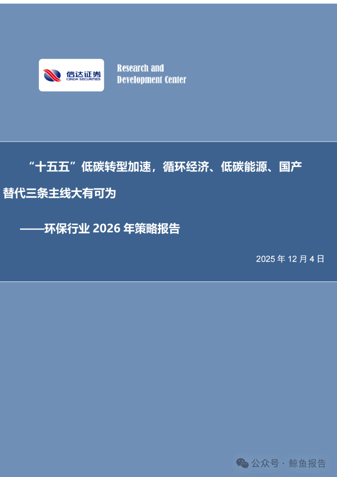 环保行业2026年策略报告:“十五五”低碳转型加速,循环经济、低碳能源、国