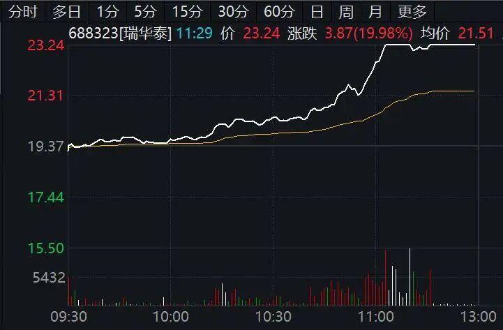 AI手机PC、折叠屏、无线耳机、AI眼镜等细分板块也纷纷跟涨,瑞华泰临近午间收盘20%涨停,欧陆通(300870)、兆驰股份(002429)、集泰股份(002909)等涨停或涨超10%。