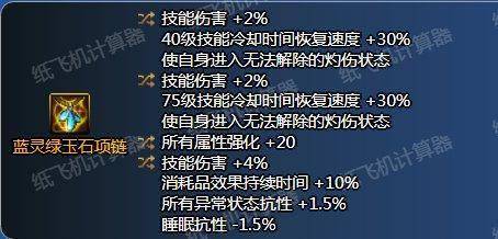 蓝灵项链需要使用75+40技能减少cd词条+4技攻,3词条即可使用。