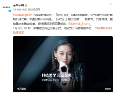 众所周知,在春节前我们还将迎来一波新品发布潮,荣耀Magic8 RSR保时捷设计也位列其中,将于1月19日正式发布。荣耀表示,荣耀Magic8 RSR保时捷设计传承经典保时捷流光飞线设计,艺术