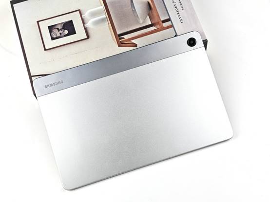 从背部来看,三星Galaxy Tab A11+的设计风格简约而时尚。整体线条流畅,没有过多的装饰,给人一种简洁大气的感觉。摄像头、侧边按钮、扬声器等细节的处理都与旗舰款产品保持统一,展现出三星一贯的高水准工艺。特别是摄像头部分,没有明显的凸起,与机身背部融为一体,既美观又实用。