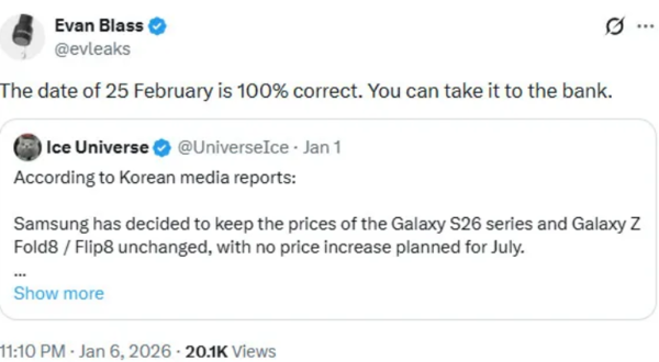 这段时间以来,有不少渠道表示,三星将在明年2月份推出年度旗舰Galaxy S26系列,依旧将包含Galaxy S26、Galaxy S26+和Galaxy S26 Ultra三款机型,而影像无疑仍然是该系列的主打卖点。现在有最新消息,近日官方进一步带来了该系列的具体发布时间。