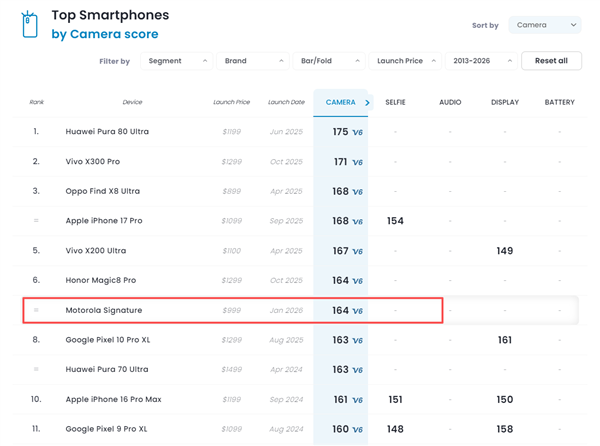联想moto X70 Air Pro DXO评分出炉:164分并列第六 6.99mm影像旗舰!