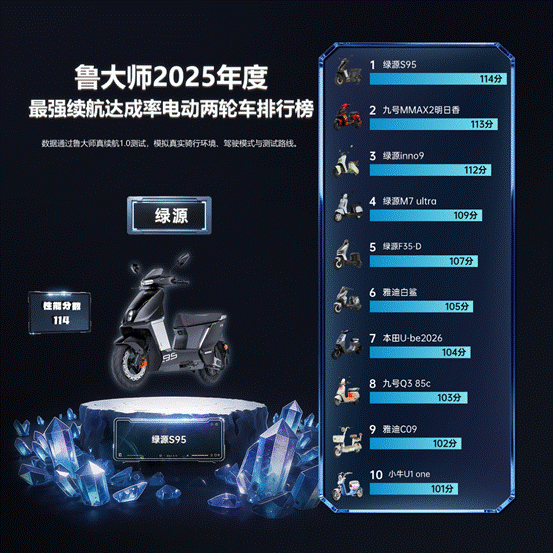 绿源 S95 荣膺“2025年度最强续航达成率”。在用户最关心的续航问题上,绿源用精准能耗管理与智能温控系统提升能量效率,基于路况实时调整功率输出,让实测表现稳定且超预期,直接解决用户“续航虚标焦虑”的痛点。