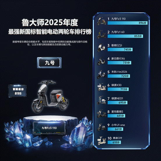 九号 Fz3 110 荣获“2025年度最强新国标智能电动两轮车”。在严格新国标框架下,九号仍通过顶配鼹鼠控与凌波OS完成体验跃升,在限制中创造高效智能化方案,以“更聪明、更便利、更可靠”的综合体验拿下年度奖项。