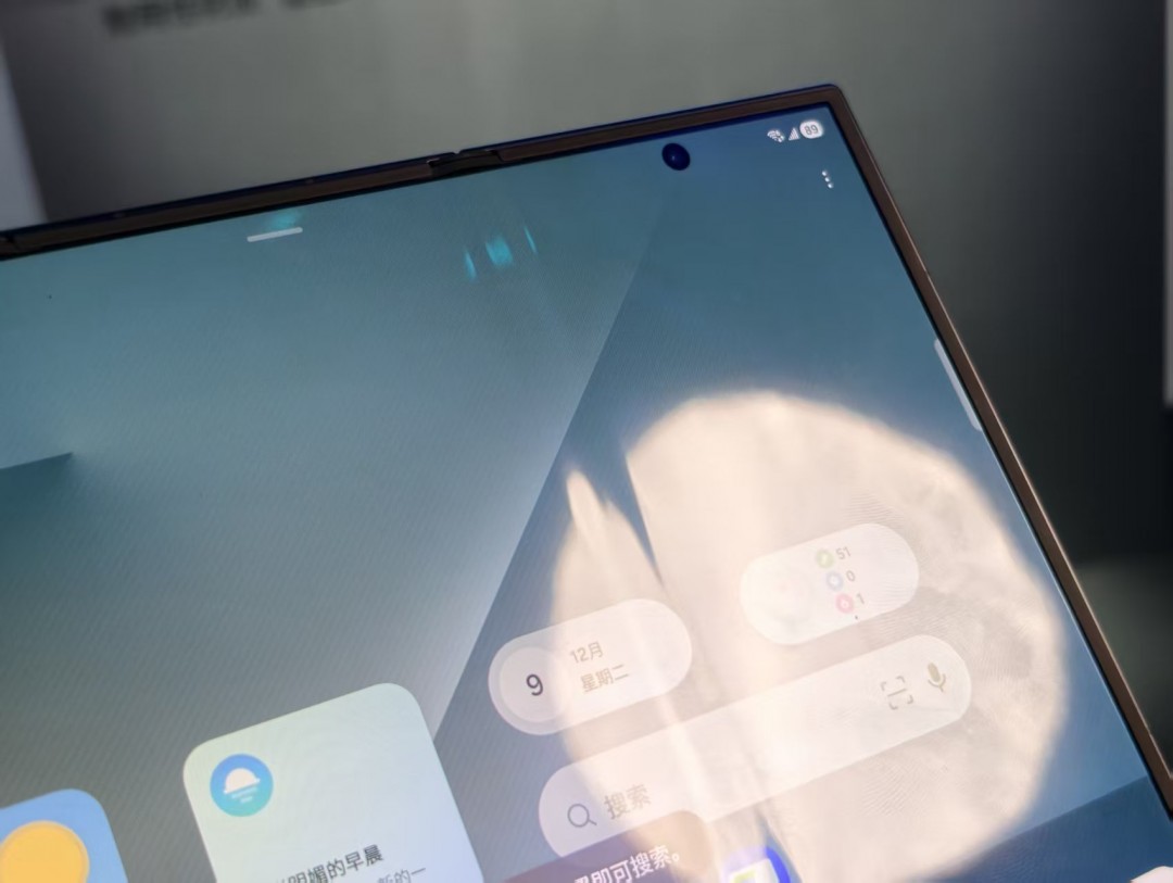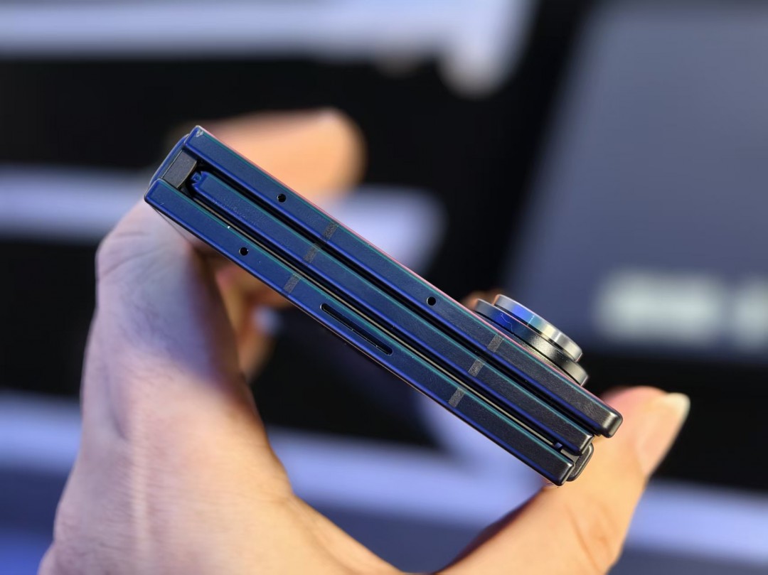 折痕是所有折叠屏用户最关心的问题之一,尤其是三折叠结构更容易产生折痕。Galaxy Z TriFold的内屏新增了减震强化涂层,经过实际体验,正视屏幕时几乎看不到折痕,不会影响日常使用和观影。侧视时确实能看到两条浅淡痕迹,但也不会影响到日常操作。现场用S Pen在折痕区域连续书写,也不会影响笔迹,而且无断触或延迟,绘画时笔触跟手性与直板旗舰、平板电脑无异。
