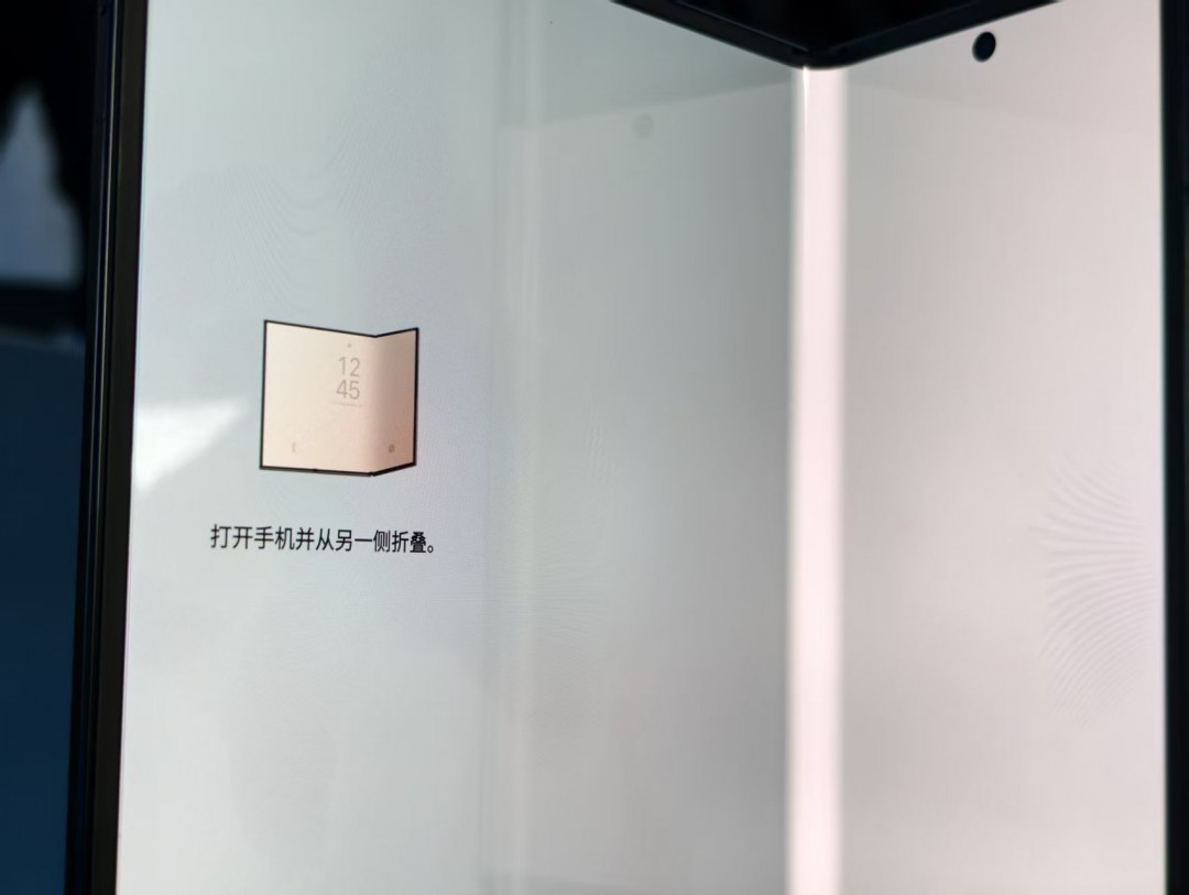 G字型结构带来了一个独特的设计:折叠顺序是固定的。如果你逆向尝试折叠,手机会立即震动并弹出提示,避免操作错误对屏幕造成损伤。这一点使用起来非常安心,大大降低了误操作的风险。