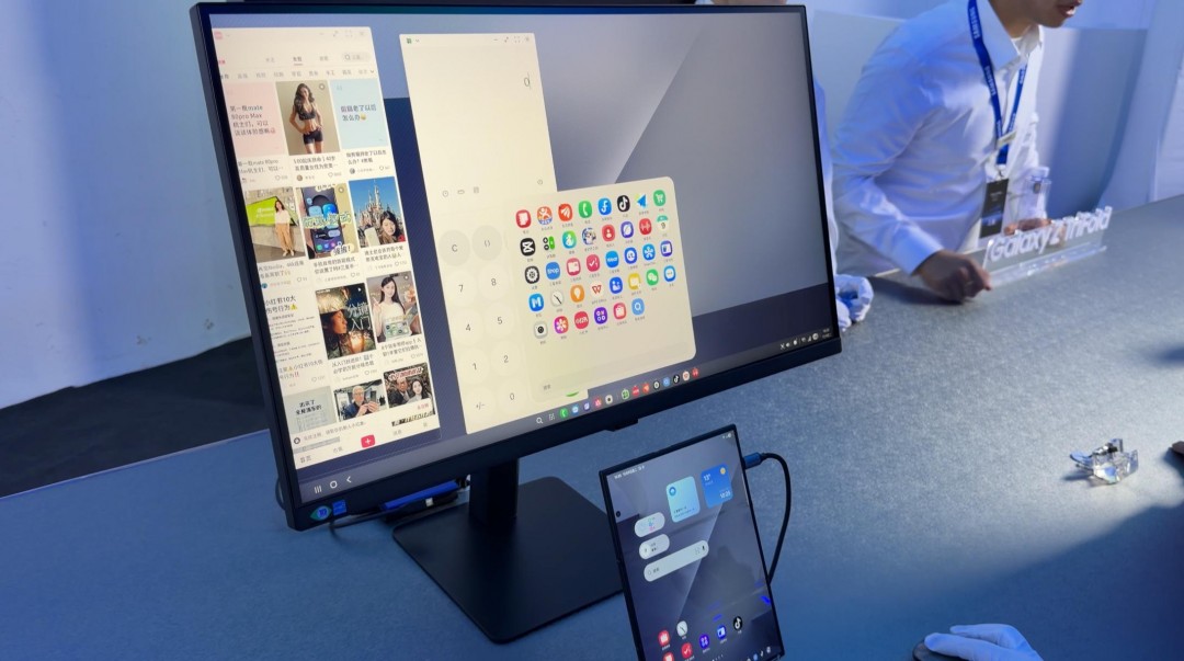 在体验区,我尝试连接外接显示器和键盘,将Galaxy Z TriFold变身为一台轻量级电脑,处理文档、编辑表格、浏览网页,体验几乎与普通电脑无异。这种"一部设备,多种形态"的特性,对于经常出差、需要随时办公的用户来说,无疑是一个巨大的吸引力。它不仅是一部手机,更是一个完整的移动办公解决方案。