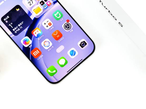 同时,Turbo 5延续了REDMI一贯的窄边框设计,从视觉观感来看,屏幕四周的边框控制相当出色,尤其是左右边框的收窄让整机正面呈现出一种近乎"全面屏"的沉浸感。配合旗舰级的大R角设计,屏幕与边框的过渡自然流畅,没有那种廉价机型常见的"割手感"。