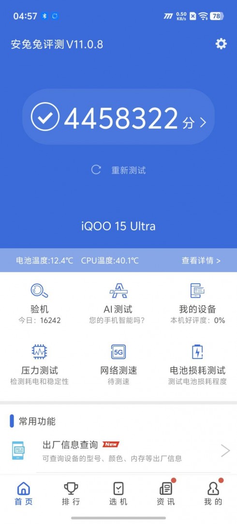 笔者手上这台是16GB+1TB的高配版本,安兔兔跑分轻松突破445万分,毫无疑问处于顶尖水准,这不仅仅是数字的游戏,更是系统流畅、应用秒开、游戏加载飞速的底气。