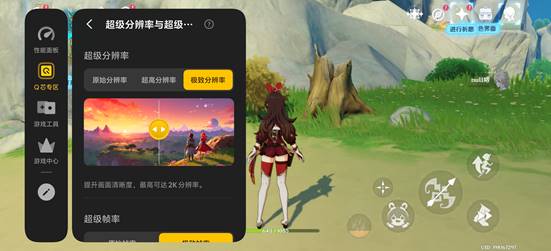 本次体验中最震撼我的部分,就是通过自研芯片Q3,在《原神》和《绝区零》中,我们可以同时开启全场景光线追踪、2K原画超分和120帧超帧。以《原神》为例:在开启光追后,水面的倒影、窗户透出的光线、远处建筑纹理质感发生了质变,阴影的层次和真实度直追PC端。