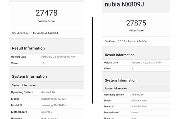 目前,三星已基本确定将于2026年2月25日举行Galaxy Unpacked发布会,届时将正式推出包含三星Galaxy S26、Galaxy S26+及Galaxy S26 Ultra在内的三款旗舰手机,以及全新的Galaxy Buds 4系列耳机。其中,Galaxy S26/S26+将首发全球首款2nm芯片Exynos 2600。现在有最新消息,近日有外媒进一步晒出了该芯片在Geekbench Vulkan GPU测试中的出色表现。