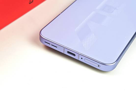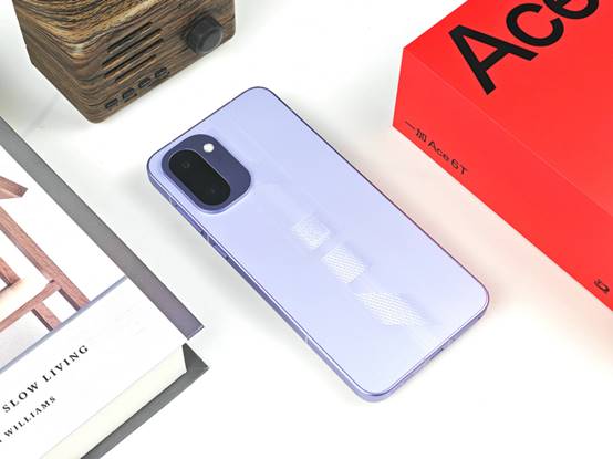 机身背部,一加Ace 6T推出了「掠影绿」、「电光紫」和「闪速黑」三款全新配色,每一种都具有独特的魅力。笔者此次拿到的是其中的「电光紫」配色版本,该配色采用了玻纤背板,更轻盈耐用,而浅紫色调则呈现出如电流疾驰般的视觉张力,彰显出不凡格调。